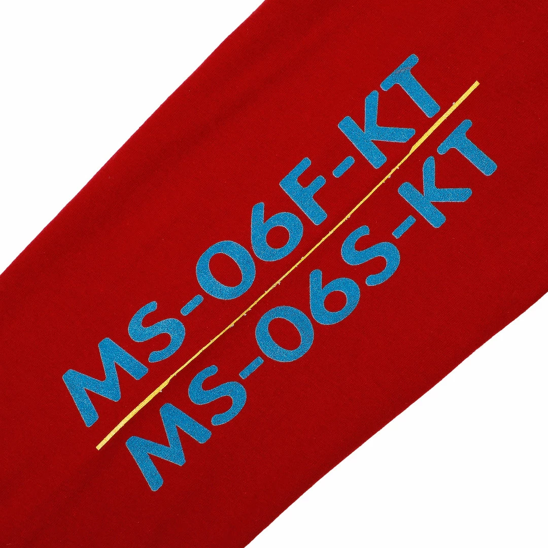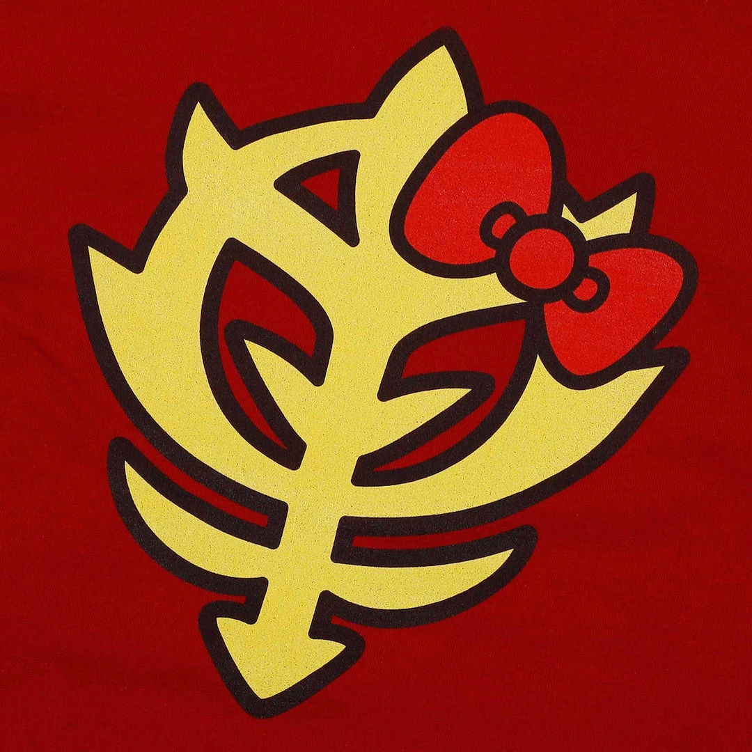Time to suit up! This longsleeve tee features the Char Aznable’s Zaku II on the front with the Principality of Zeon logo at the back. It also has the the mobile suits listed on the sleeve with KT at the end for Kitty, as in Hello Kitty!