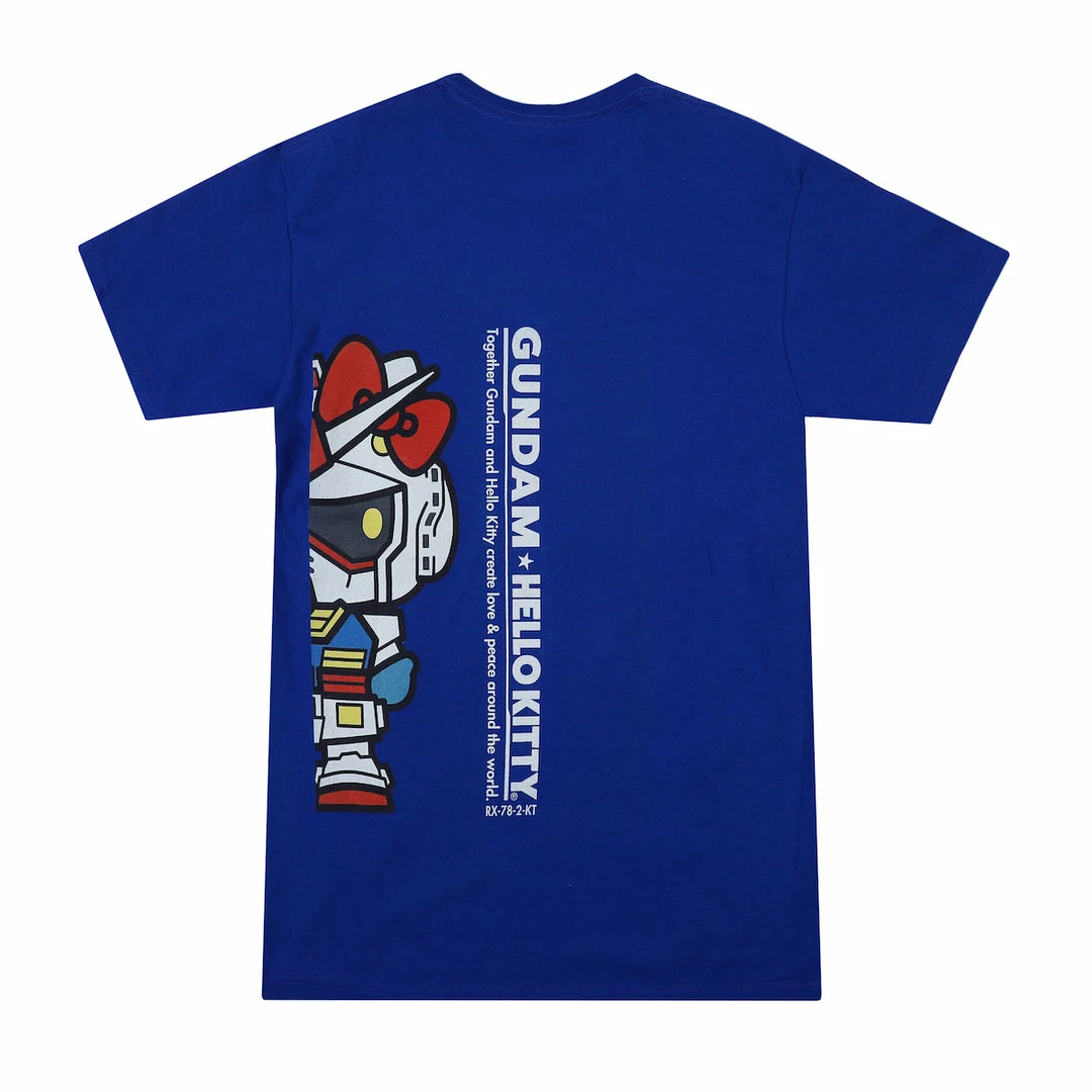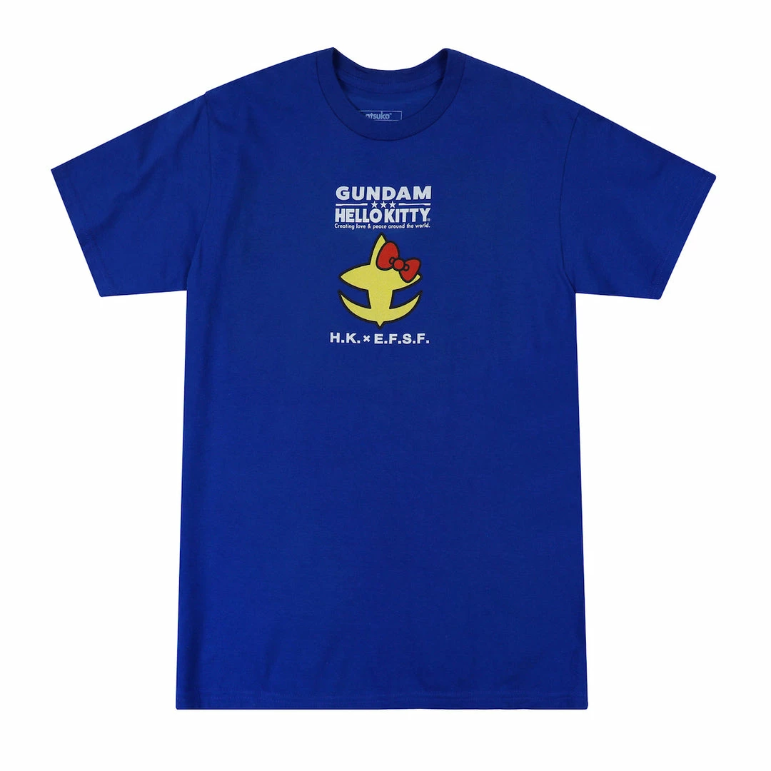Time to suit up! This tee features the E.F.S.F. logo at the front. At the back is a graphic with the Hello Kitty RX-78-2 Gundam and the text, “Creating love & peace around the world.