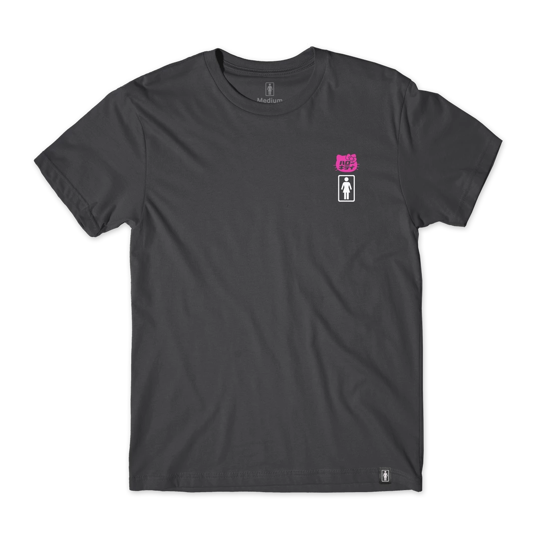 A simple charcoal tee to wear whenever! It has the small GIRL logo paired with Hello Kitty’s silhouette at the chest and a larger Hello Kitty graphic at the back.