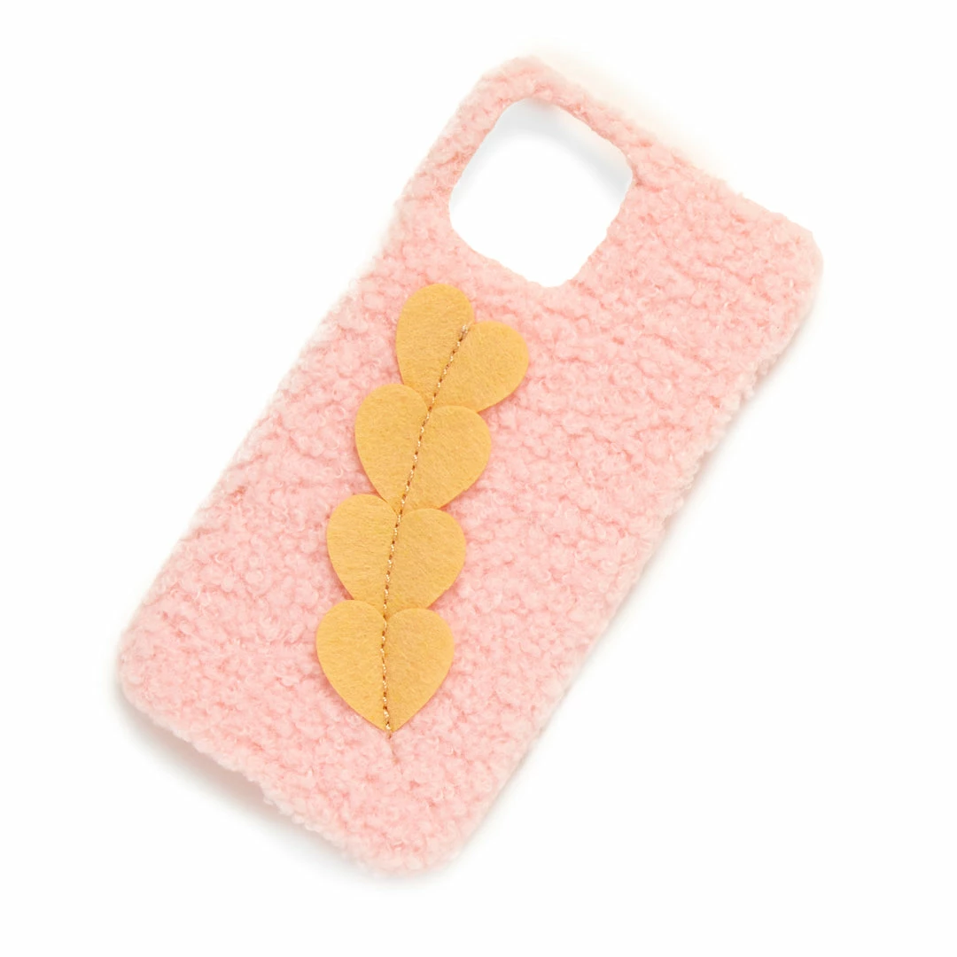 Part of the sweet and romantic Cogimyun Love collection, this iPhone case has a soft and cozy fleece texture in the cutest shade of blush. On it is an embroidered felt motif that’s inspired by Cogimyun’s hair tie!