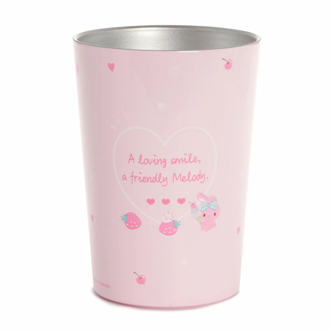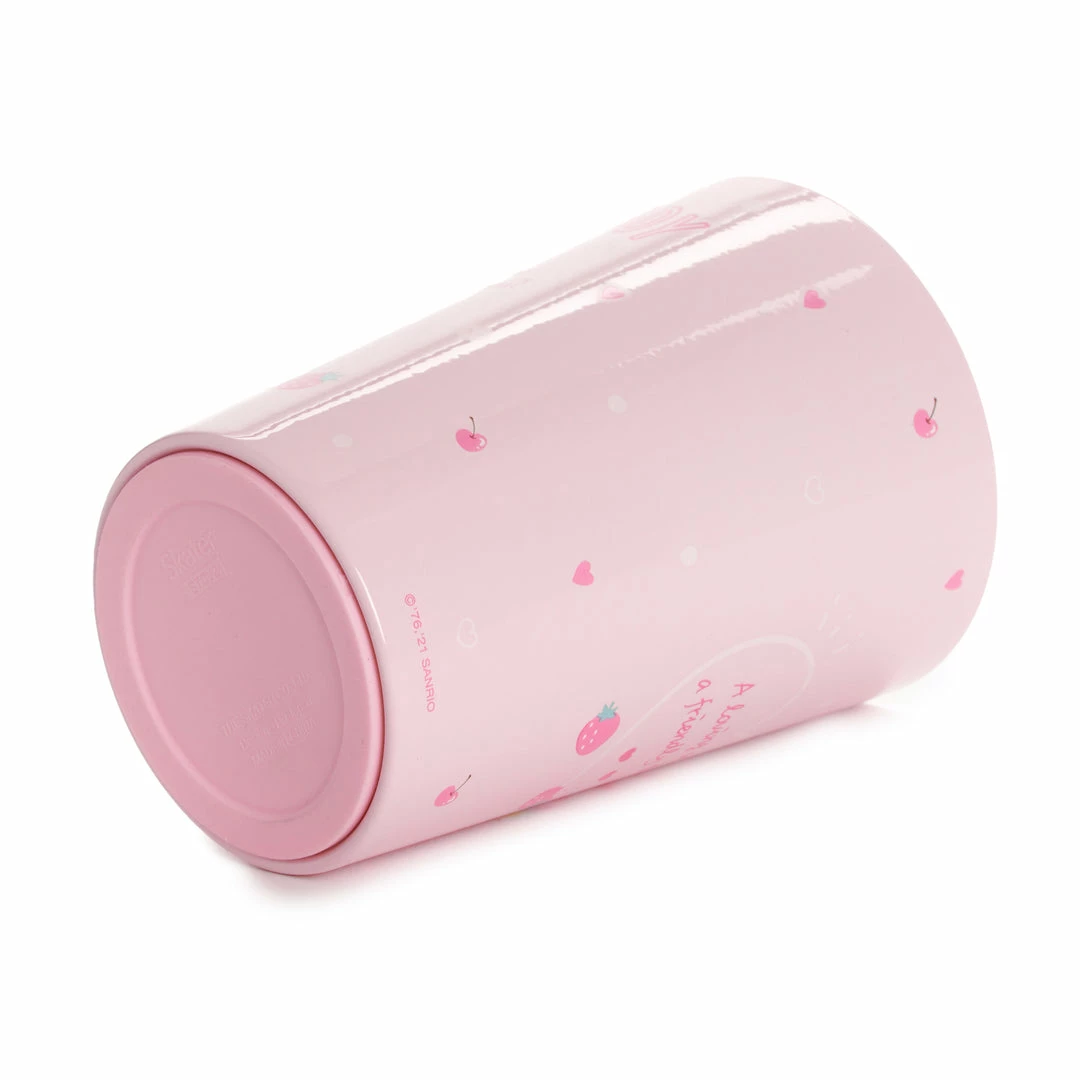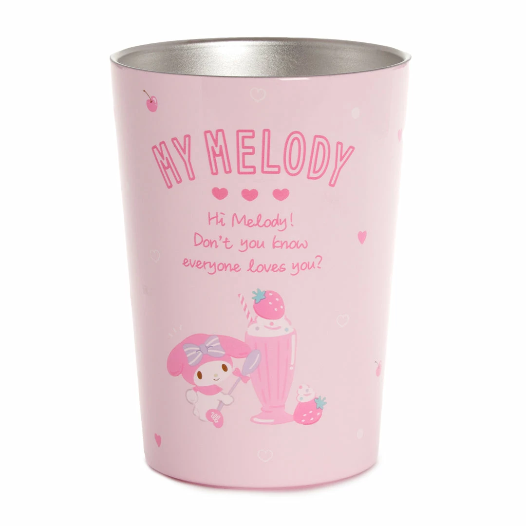 This stainless steel tumbler has a vacuum-insulated, double-walled structure to keep your drink extra cold (or hot!). It features My Melody’s name on the exterior with an ice cream float and the phrase, “Hi Melody! Don’t you know everyone loves you?”